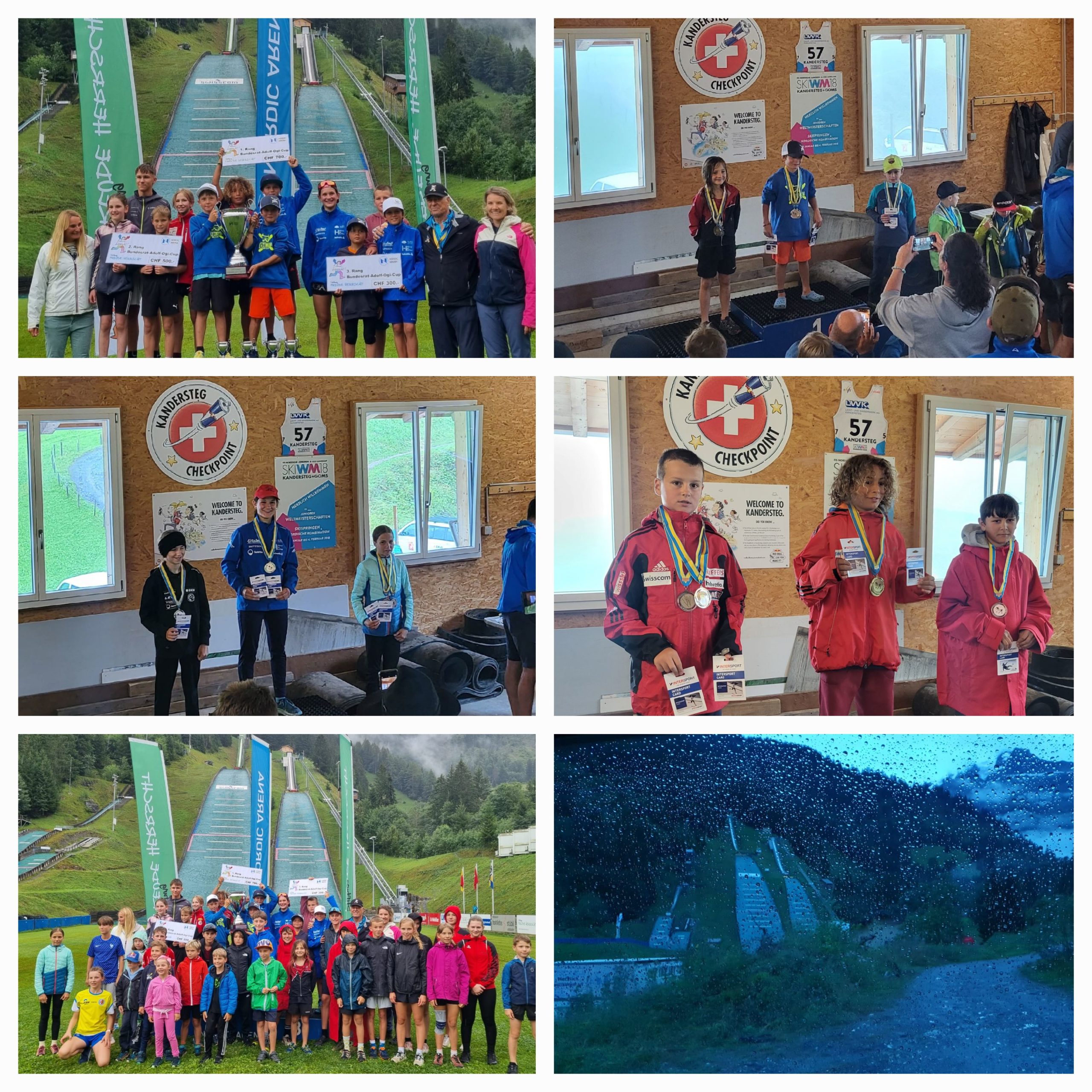 Tout ce petit monde se retrouve ensuite pour manger et prendre des forces avant la course de combiné. L’attente est longue, le ciel se charge et à 13.45 quand le départ des U16, partis pour 3 tours d’un kilomètre, est donné, sous une véritable tempête ne se calmant pas avant l’arrivée des U10, une heure plus tard. Les résultats ont lieu à l’abri dans le local de la dameuse, rapidement rangé après le repas de midi. Certains ont gagné des places, d’autres en ont perdu ou ont gardé leur rang mais ce qui importe, ici, c’est de féliciter tous les coureurs qui ont affronté, avec sourire, les conditions dantesques d’un sport d’extérieur. Vous avez été braves et courageux tout comme les coaches et parents répartis sur le parcours. Merci à tous pour ces belles émotions et rendez-vous le 30 août à Einsiedeln pour les championnats suisses U16, juniors et adultes et le 1 septembre pour le concours par équipe où l’on devrait voir quelques combiers côtoyer Killian Peier pour tenter de faire mieux que leur 4e place de l’an dernier.